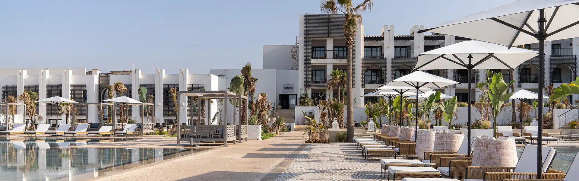 Sofitel Agadir Thalassa Sea & Spa's private beach and seawater spa, your stay will bring you vitality, tranquility and serenity. Discover the magic of the ocean where wellness and rejuvenation are at the heart of everything we do. Facing the Atlantic Ocean, this 5-star Moroccan-inspired hotel with its pool, lush patio and calm and gentle atmosphere offer a timeless and unforgettable experience. The resort has 173 rooms, including 44 suites, and three restaurants serving Moroccan cuisine. Extend this experience of well-being at the thalassotherapy centre with its beauty and fitness area.